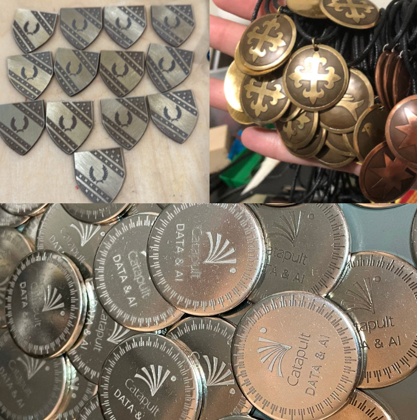 Along with one off truly unique pieces, we also do runs of awards and medallions for tournaments, local SCA groups and even Kingdoms to fill their regalia coffers.