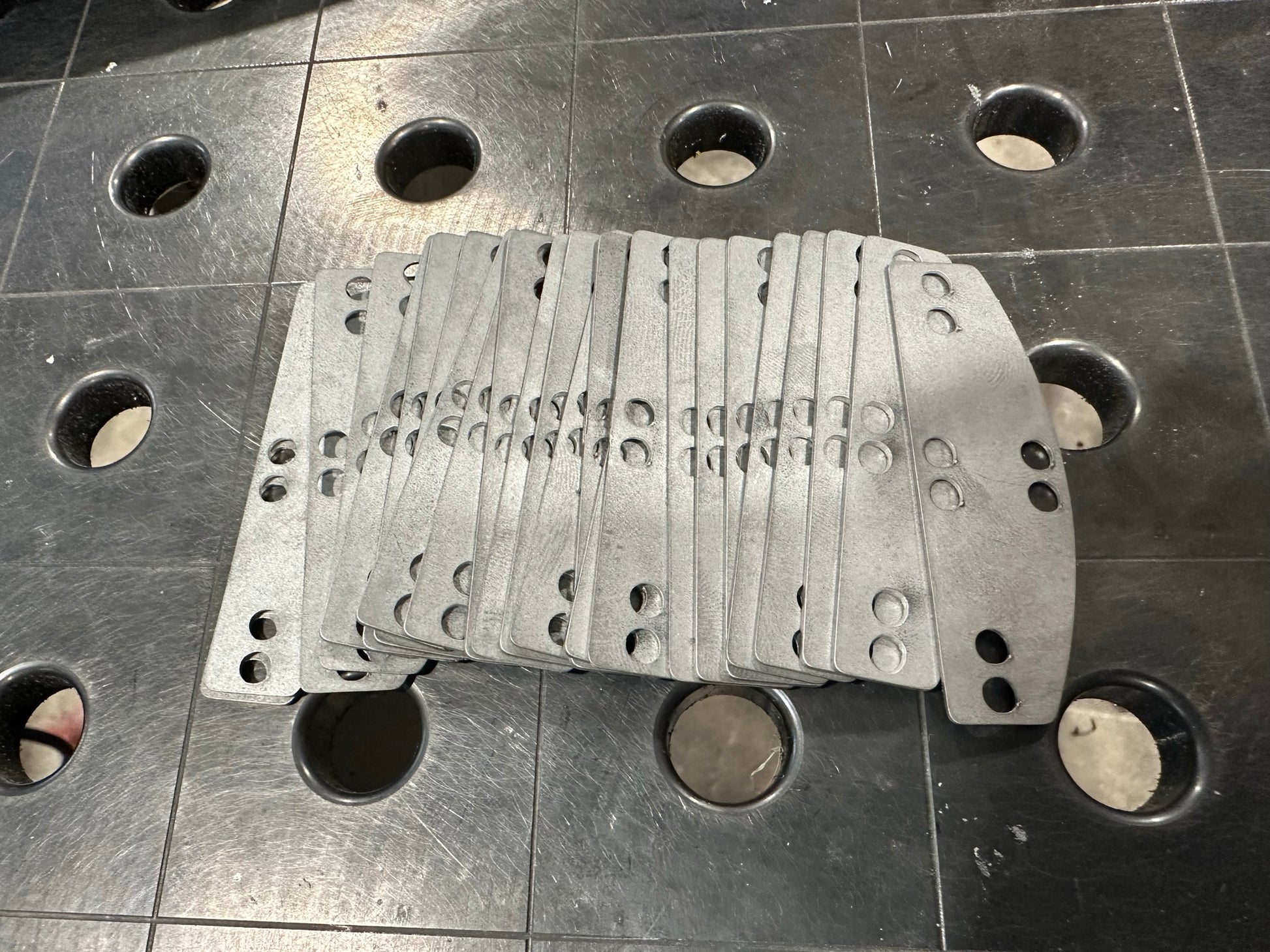 You can get your lamellar plates in 1.2mm 304 Stainless Steel, 1mm Hardened 410 stainless steel (dark coloration due to heat treat but SIGNIFICANTLY stronger), or 1.6mm 6061-T6 Aluminum. All are great options based on your use or need.