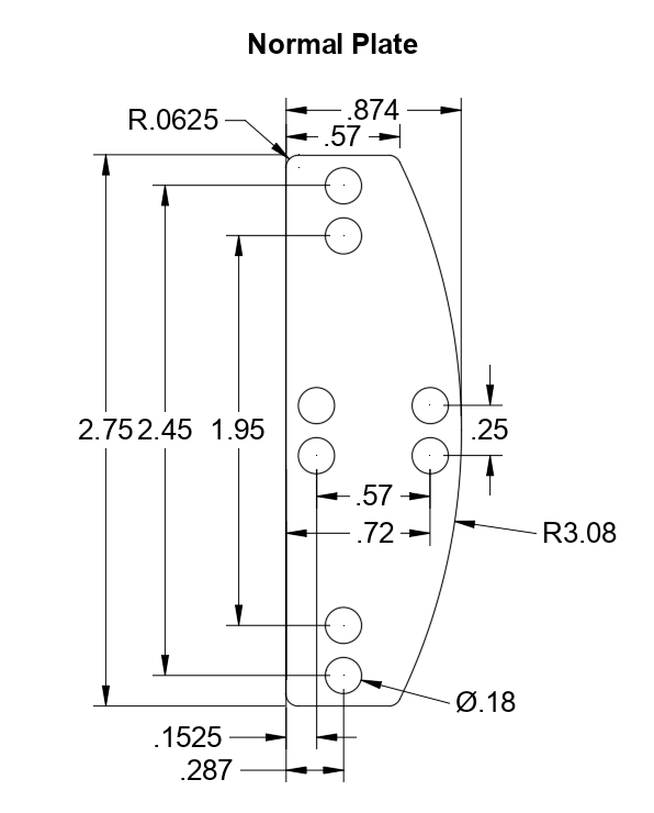 - 1.6mm 6061-T6 Aluminum ~1.25 lb. (424 grams)