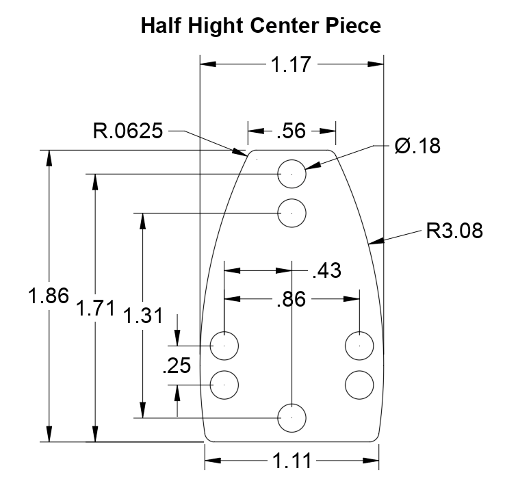 - 1.6mm 6061-T6 Aluminum ~1.25 lb. (424 grams)